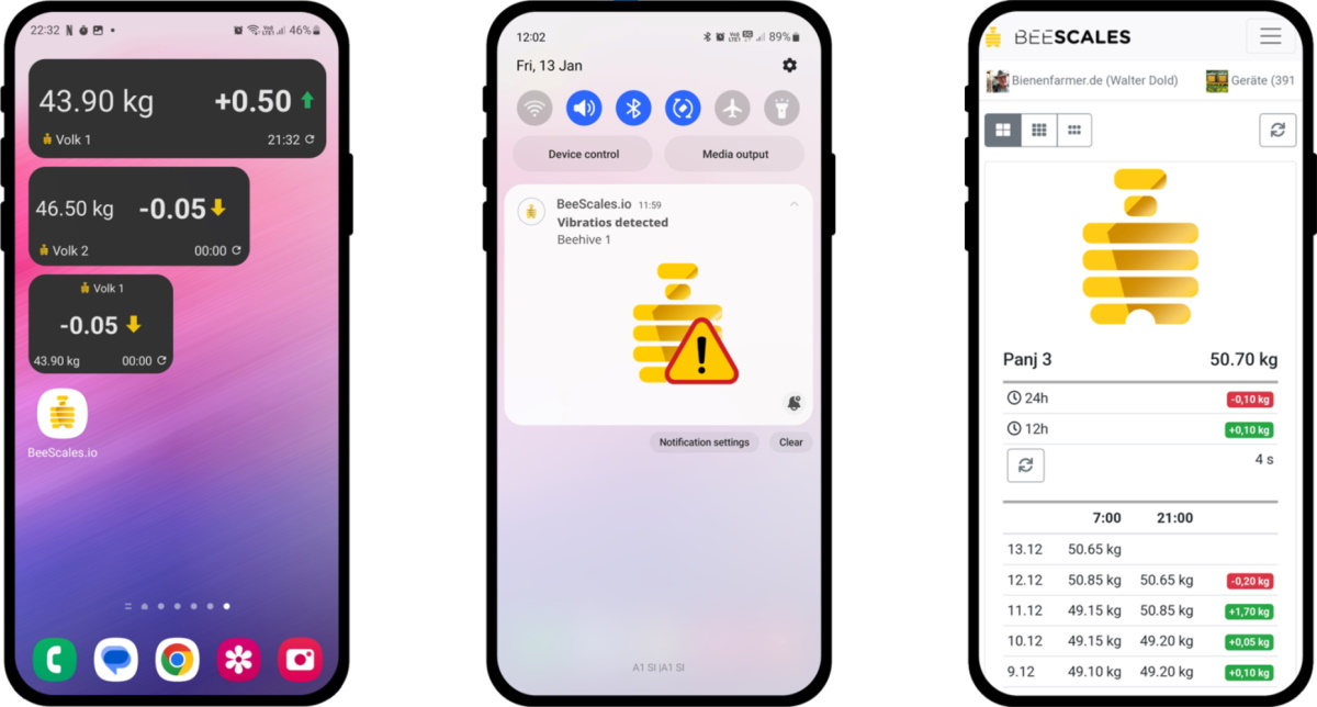 App mobile per bilance per alveari (BeeScales) – Accesso alla bilancia per alveari, widget e notifiche push | compatibile con i prodotti Logar