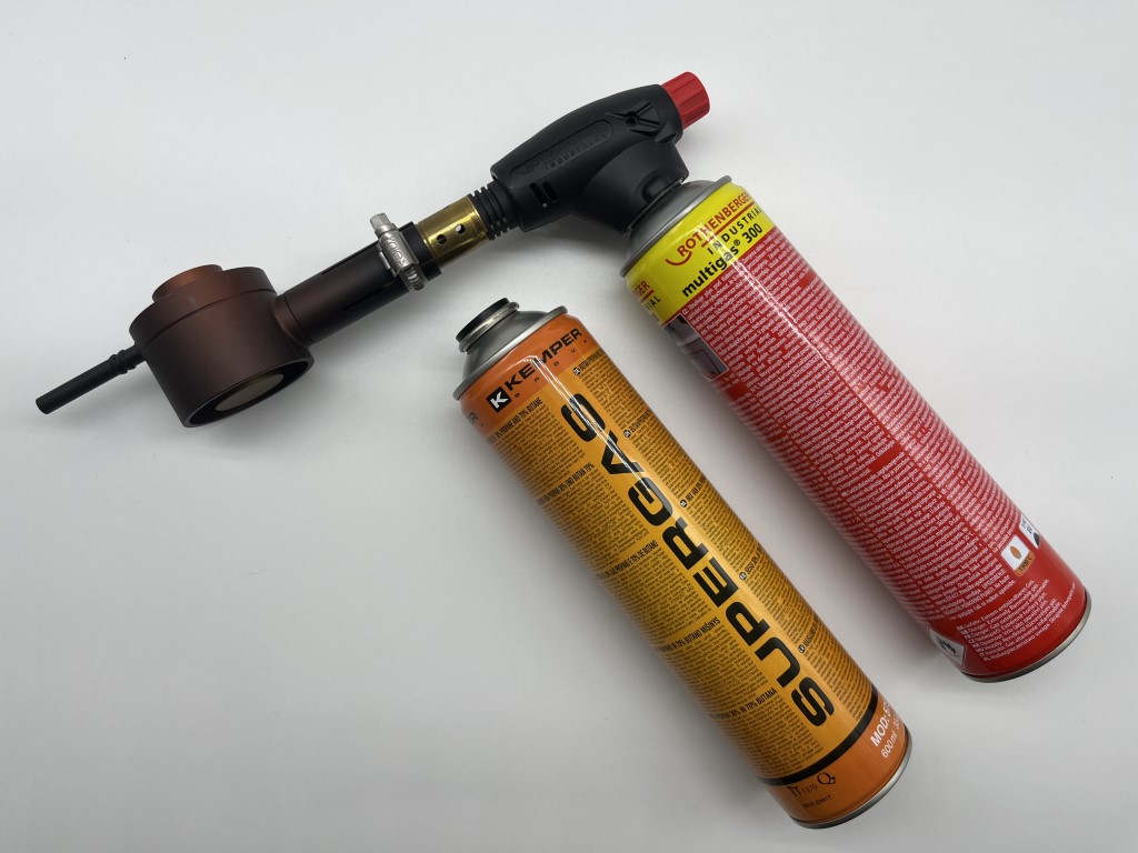 - Avvitate prima il bruciatore alla cartuccia gas, quindi posizionate il sublimatore sul bruciatore e fissarlo con la clip fornita.