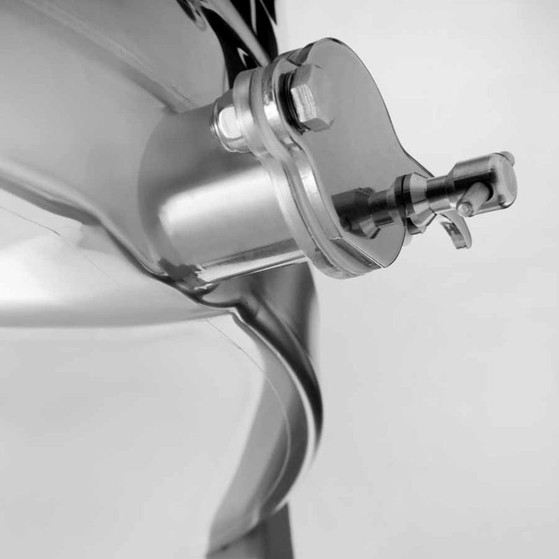- Fondo / Rubinetto: fondo saldato senza giunture e inclinato verso il rubinetto; rubinetto saldato nel punto più basso; rubinetti per miele Ø 38 mm e Ø 42 mm; due rubinetti a strozzamento inox 6/4''