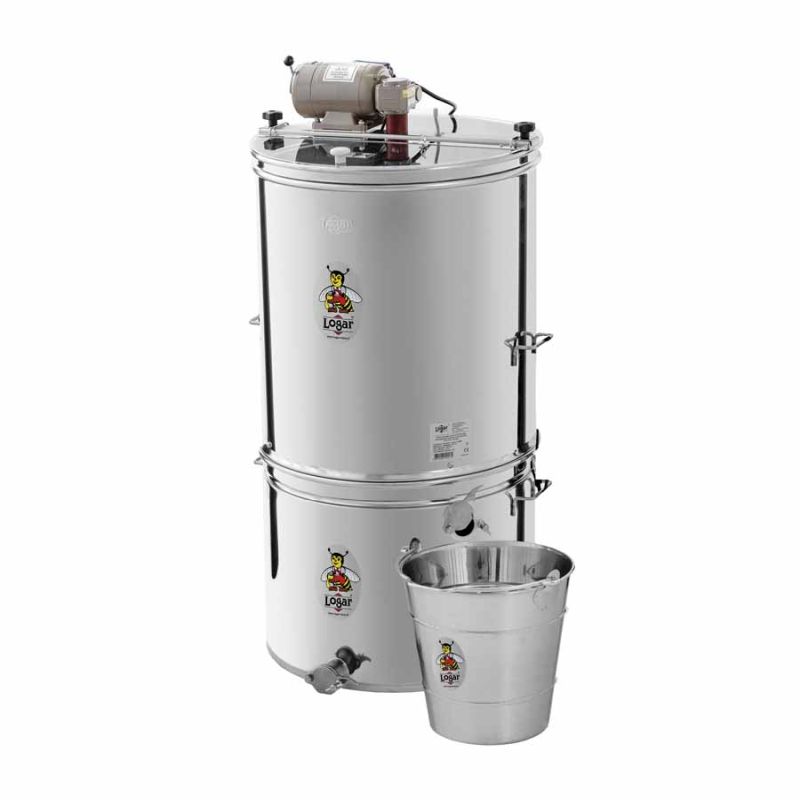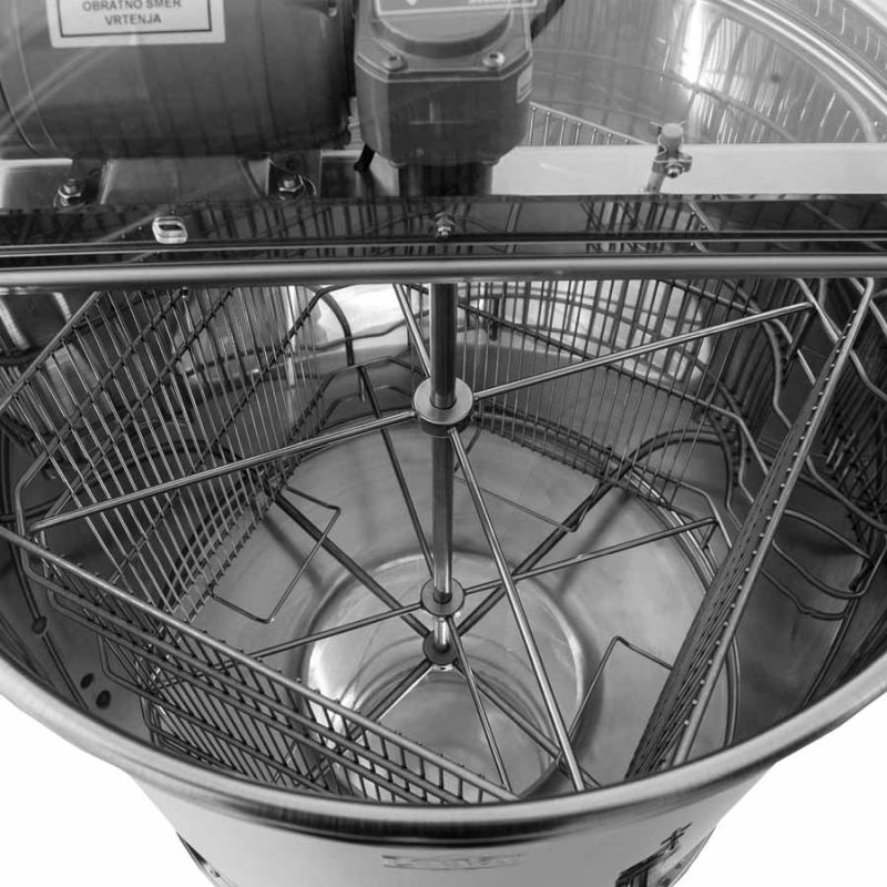 Tutte le parti a contatto con il miele sono realizzate con materiali idonei per uso alimentare. Il coperchio è fissato con cerniere speciali ed è in metacrilato trasparente, permettendo di osservare il processo di estrazione.