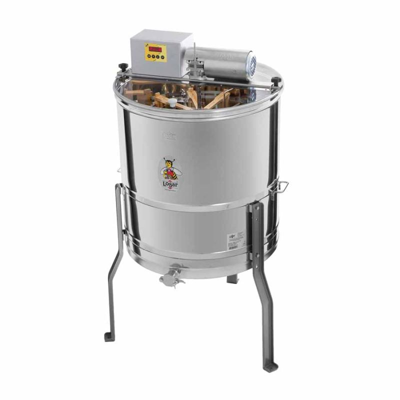 Caratteristiche distintive dell'estrattore radiale Logar: lavorazione di alta qualità in acciaio inox, cestello saldato senza giunzioni, rubinetto del miele saldato in posizione bassa, controllo completamente elettronico con programmi memorizzabili e spegnimento di sicurezza sul coperchio. Ideale per apicoltori che desiderano una lavorazione del miele efficiente, igienica e affidabile.