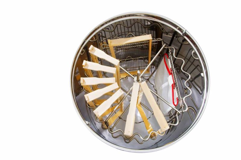 Consente la centrifuga di 20 telai (altezza 11–16 cm) o 8 telai (fino a 20 cm) con lunghezza listelli superiori di 48 cm.