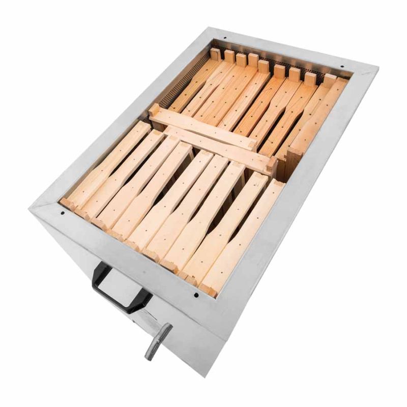 Adatto per: apicoltori con circa 20–100 famiglie di api. Il cestello può contenere circa 23 telaini (a seconda della misura dei telai); dimensioni interne del cestello: 33 x 53 x 49 cm.