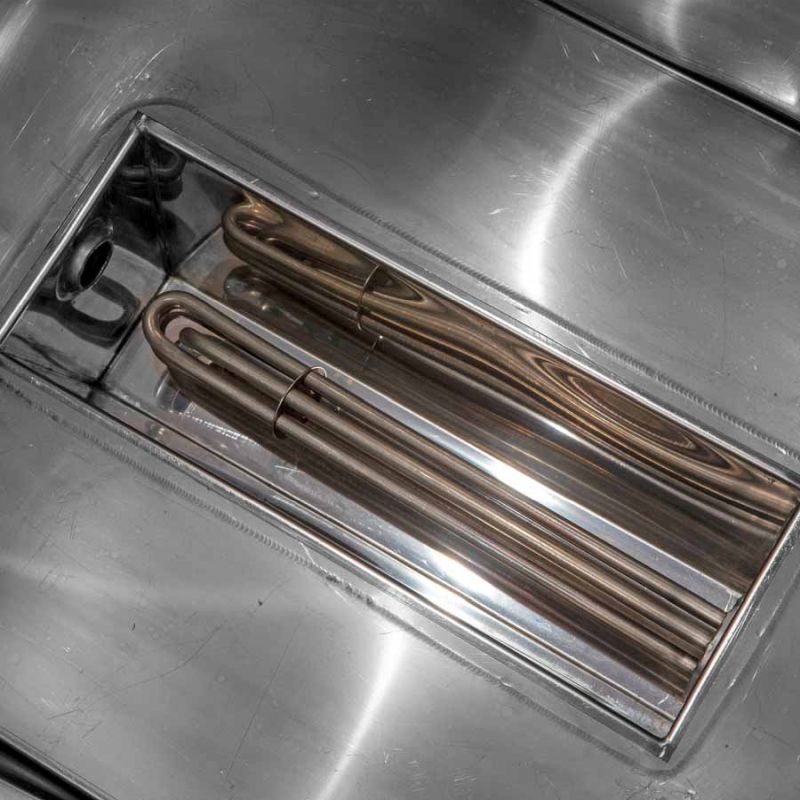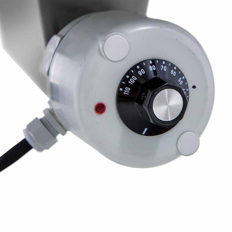 - Resistenza a immersione 3 kW/230 V con regolatore di temperatura 30–110 °C e protezione antigelo/contro il funzionamento a secco.