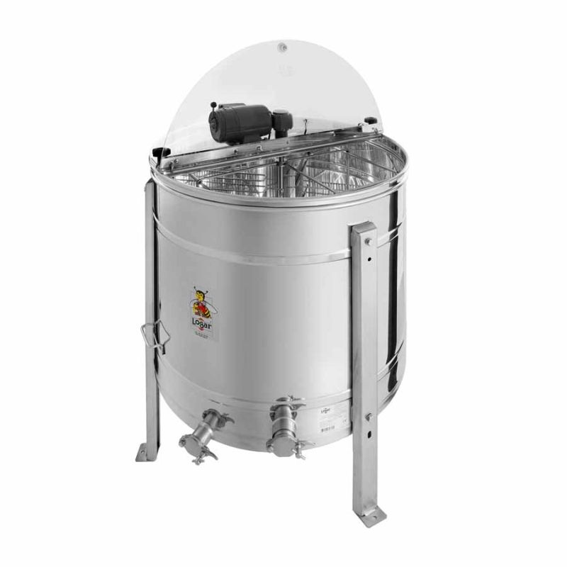 Centrifuga a inversione automatica per 4 favi con motore 110 W / 230 V e interruttore di sicurezza che arresta automaticamente il motore all'apertura del coperchio. Con la leva di regolazione è possibile impostare la velocità desiderata tra 0 e 280 giri/min e la rotazione a destra o a sinistra. La tecnologia più avanzata ci ha permesso di sviluppare una soluzione innovativa per il fondo della centrifuga. Il fondo del cilindro è saldato senza giunzioni e inclinato verso lo scarico. Il rubinetto a schiacciamento in acciaio inox 6/4" è installato nel punto più basso possibile, in modo che tutto il miele possa defluire dalla centrifuga. Tutte le parti a contatto con il miele sono realizzate con materiali idonei al contatto alimentare. Il coperchio è in plexiglass trasparente.